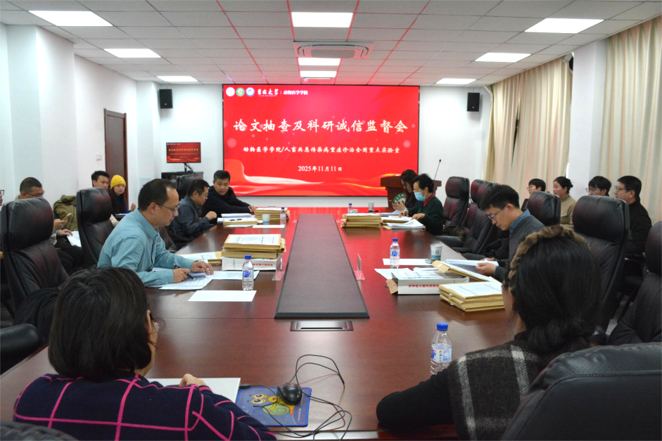 论文抽查及科研诚信监督检查会上,特约邀请公共卫生学院刘娅教授,生命科学学院副院长于彬教授,植物科学学院副院长吴涛教授,动物科学学院副院长袁宝教授,及科研院学术诚信科科长邵琳老师担任检查专家组成员莅临指导,学院被抽检的24篇论文通讯作者或第一作者参加会议。